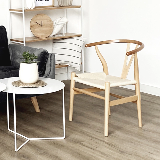 La silla Wishbone fue diseñada por uno de los pioneros en funcionalidad orgánica, el danés Hans J. Wegner. A lo largo de su carrera fusionó a la perfección materiales y formas naturales con mucha practicidad. Sus trabajos contibuyeron significativamente a la popularidad de los productos daneses. Este es uno de los tantos modelos que se convirtieron en íconos por su producción en masa y aceptación en el público.